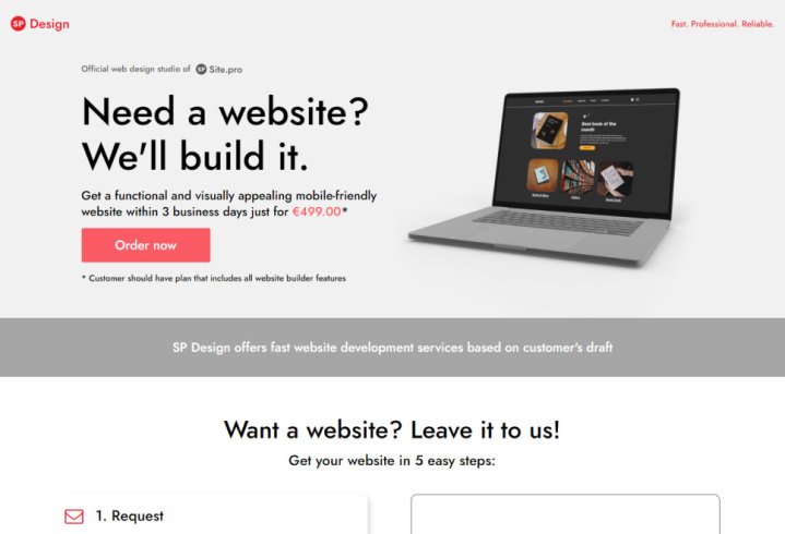Envie informações por e-mail para info@buildsite.pro* *até 5 itens de menu, 15 fotos, 3 páginas de texto, logótipo e dados de contacto.